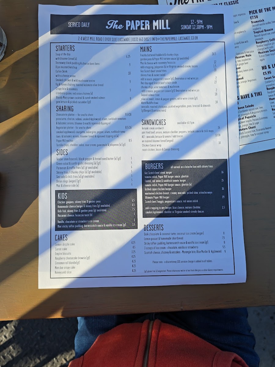 Welcome to The Paper Mill, nestled along the picturesque River Esk in Lasswade. This charming venue stands out for its modern interpretations of classic dishes, priced reasonably between £15-20. The inviting atmosphere is complemented by friendly staff and a lovely outdoor beer garden, making it perfect for both casual lunches and special brunches.